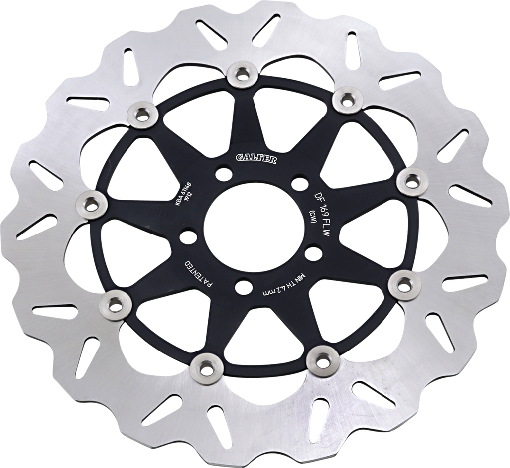 Laser-cut double disc ground 420 high carbon stainless steel, Direct-replacement brake rotors; do not require any extra parts, bolt on just like a stock brake disc, Full-floating design rotors have an aluminum center carrier, Improves brake lever feel and modulation, Rotors cool as they rotate to lower brake operating temperatures, Design is self-cleaning, removes water as it rotates, Less tendency to warp, Manufactured in Spain, For maximum braking performance and rotor longevity, Galfer recommends using Galfer brake pads with Galfer rotors.
