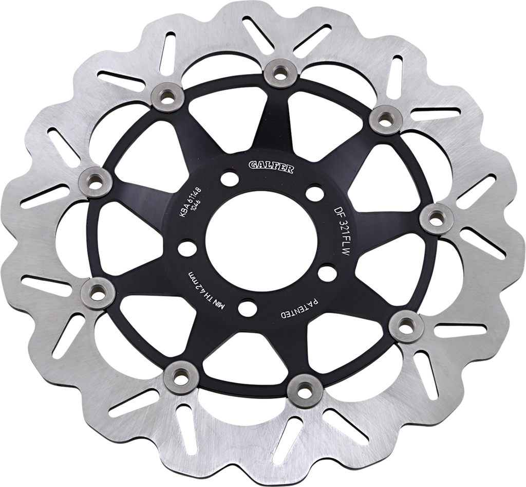 Laser-cut double disc ground 420 high carbon stainless steel, Direct-replacement brake rotors; do not require any extra parts, bolt on just like a stock brake disc, Full-floating design rotors have an aluminum center carrier, Improves brake lever feel and modulation, Rotors cool as they rotate to lower brake operating temperatures, Design is self-cleaning, removes water as it rotates, Less tendency to warp, Manufactured in Spain, For maximum braking performance and rotor longevity, Galfer recommends using Galfer brake pads with Galfer rotors.