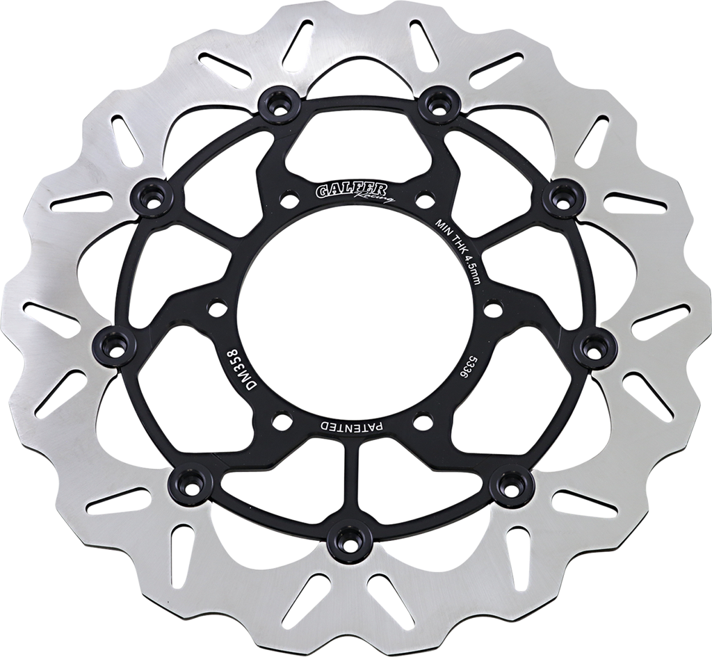 Laser-cut double disc ground 420 high carbon stainless steel, Direct-replacement brake rotors; do not require any extra parts, bolt on just like a stock brake disc, Full-floating design rotors have an aluminum center carrier, Improves brake lever feel and modulation, Rotors cool as they rotate to lower brake operating temperatures, Design is self-cleaning, removes water as it rotates, Less tendency to warp, Manufactured in Spain, For maximum braking performance and rotor longevity, Galfer recommends using Galfer brake pads with Galfer rotors.