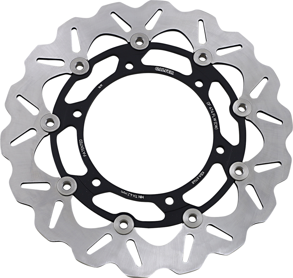 Laser-cut double disc ground 420 high carbon stainless steel, Direct-replacement brake rotors; do not require any extra parts, bolt on just like a stock brake disc, Full-floating design rotors have an aluminum center carrier, Improves brake lever feel and modulation, Rotors cool as they rotate to lower brake operating temperatures, Design is self-cleaning, removes water as it rotates, Less tendency to warp, Manufactured in Spain, For maximum braking performance and rotor longevity, Galfer recommends using Galfer brake pads with Galfer rotors.