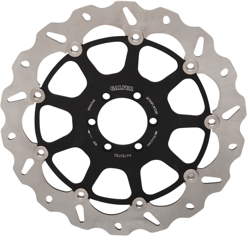 Laser-cut double disc ground 420 high carbon stainless steel, Direct-replacement brake rotors; do not require any extra parts, bolt on just like a stock brake disc, Full-floating design rotors have an aluminum center carrier, Improves brake lever feel and modulation, Rotors cool as they rotate to lower brake operating temperatures, Design is self-cleaning, removes water as it rotates, Less tendency to warp, Manufactured in Spain, For maximum braking performance and rotor longevity, Galfer recommends using Galfer brake pads with Galfer rotors.