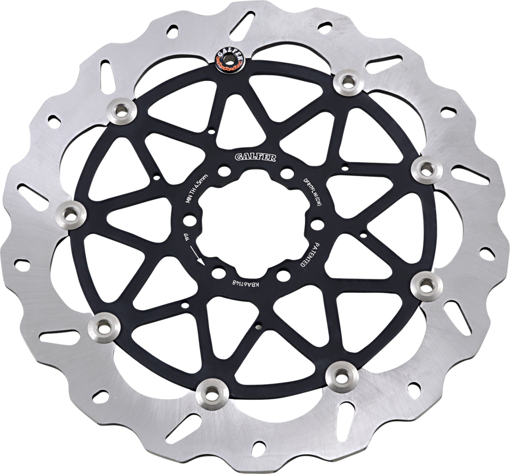 Laser-cut double disc ground 420 high carbon stainless steel, Direct-replacement brake rotors; do not require any extra parts, bolt on just like a stock brake disc, Full-floating design rotors have an aluminum center carrier, Improves brake lever feel and modulation, Rotors cool as they rotate to lower brake operating temperatures, Design is self-cleaning, removes water as it rotates, Less tendency to warp, Manufactured in Spain, For maximum braking performance and rotor longevity, Galfer recommends using Galfer brake pads with Galfer rotors.