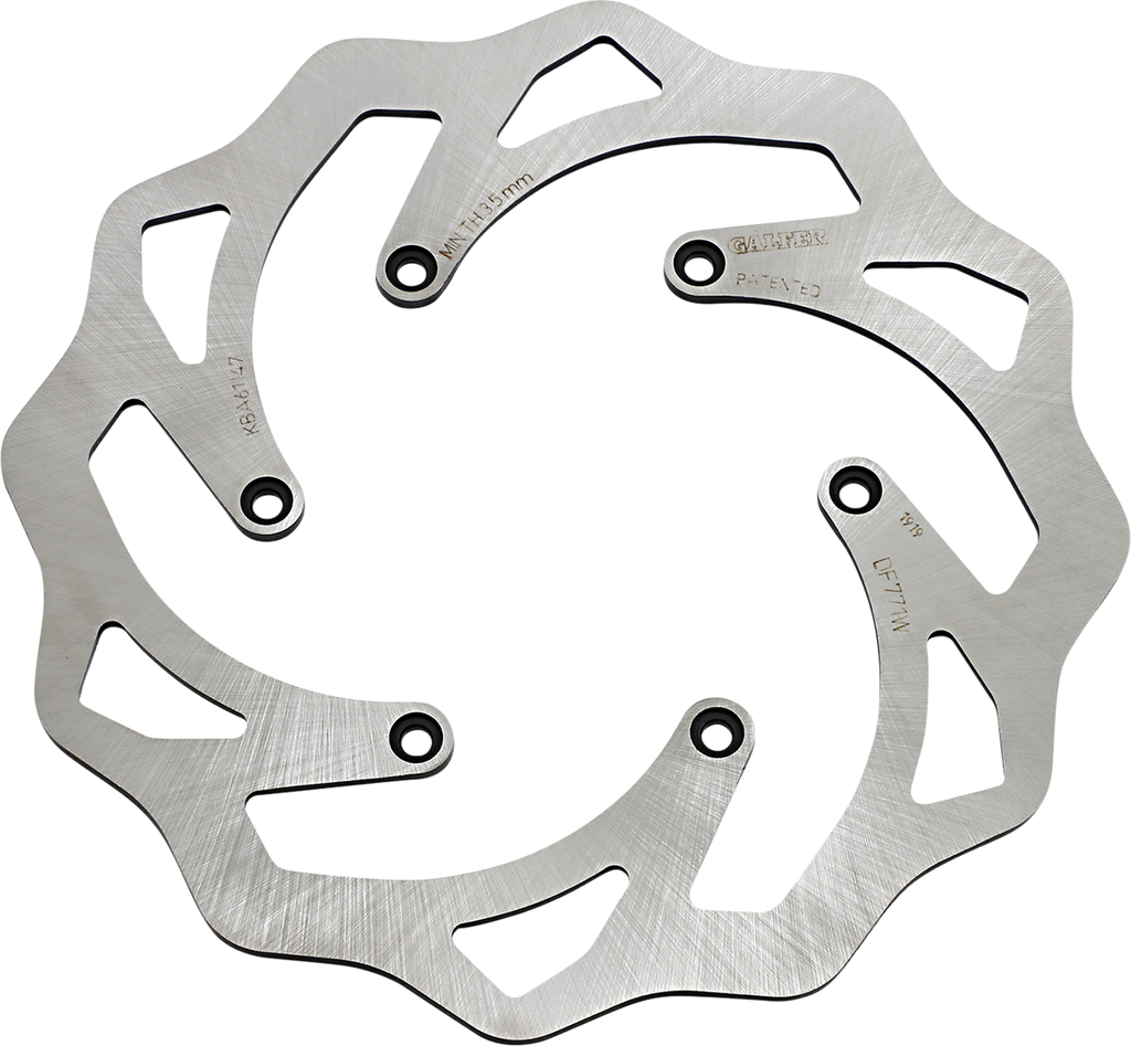Laser-cut double disc ground 420 high carbon stainless steel, Direct-replacement brake rotors; do not require any extra parts, bolt on just like a stock brake disc, Full-floating design rotors have an aluminum center carrier, Improves brake lever feel and modulation, Rotors cool as they rotate to lower brake operating temperatures, Design is self-cleaning, removes water as it rotates, Less tendency to warp, Manufactured in Spain, For maximum braking performance and rotor longevity, Galfer recommends using Galfer brake pads with Galfer rotors.