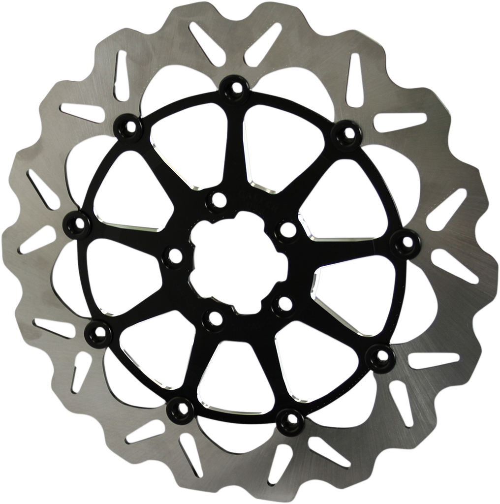 Full-floating oversize brake rotor design, Bolt-on design works with the stock hub pattern, Made from high-carbon 420 stainless steel, Laser-cut (never stamped) design is double-disc parallel ground to ensure perfect flatness, Heat-treated for each specific application, Brake caliper relocation brackets not included., For maximum braking performance and rotor longevity, Galfer recommends using Galfer brake pads with Galfer rotors.