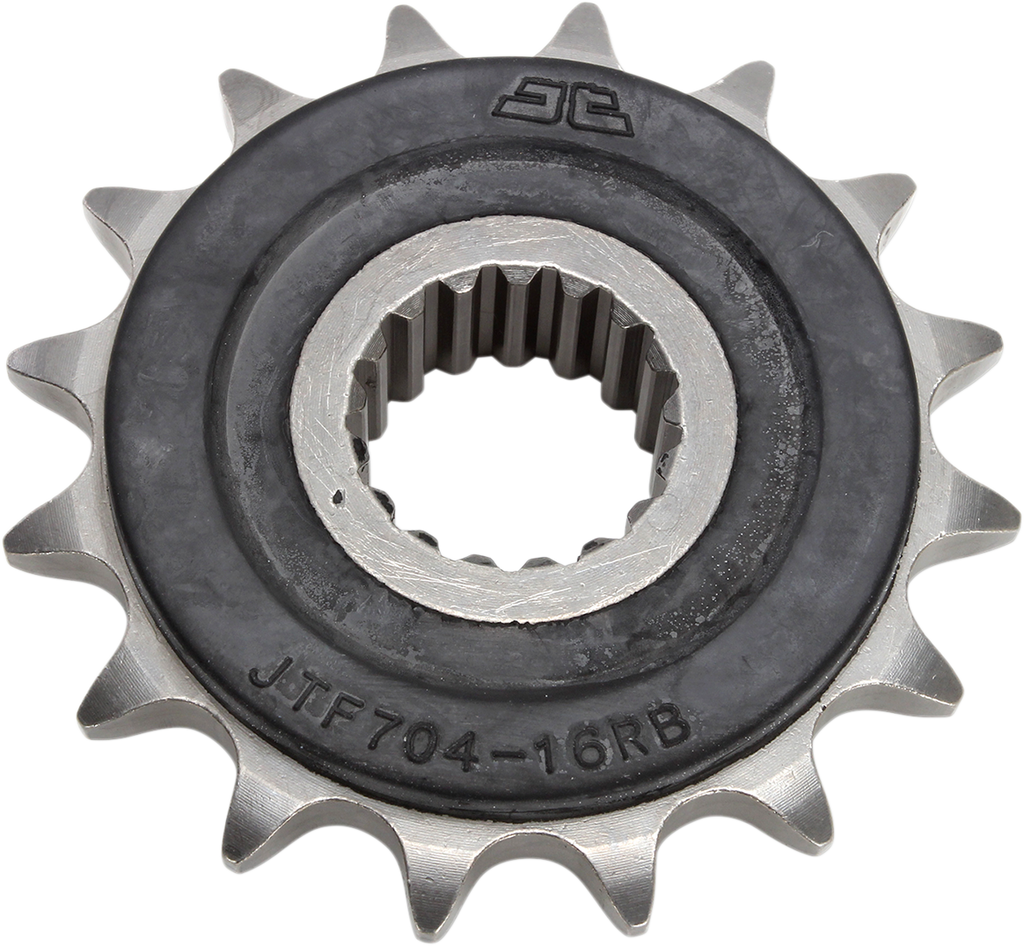 Computer-designed to achieve ultimate strength at minimum weight, JT combines leading-edge technology with top materials to produce the ultimate quality sprocket range with unbeatable value, Every sprocket meets or exceeds the highest possible quality standards set for the motorcycle industry, Sprockets are heat-treated and bead-blasted to reduce material surface tension, Front sprockets are made with C45 steel and SCM415 chromoly steel alloy; rear sprockets made with top-quality-grade C45 high-carbon steel, RUBBER CUSHIONED FRONT SPROCKETS "RB", Used by the major Japanese motorcycle manufacturers since early 1990’s to dampen the chain impact on the teeth of the front sprocket, Quality, design and OEM proven technology are the same as used for what is supplied to the motorcycle manufacturers, INDUCTION HARDENED BLACK ZINC FINISH REAR SPROCKETS "BK", Made from C45 high carbon steel, Teeth ARE heat-induction hardened to 38-50 HRC, When installing sprockets which differ from OEM sizes, check for proper clearances before operating., instruction to designerboxed note follows