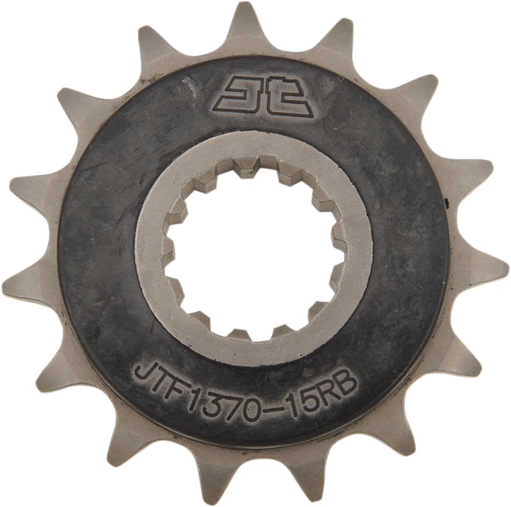Computer-designed to achieve ultimate strength at minimum weight, JT combines leading-edge technology with top materials to produce the ultimate quality sprocket range with unbeatable value, Every sprocket meets or exceeds the highest possible quality standards set for the motorcycle industry, Sprockets are heat-treated and bead-blasted to reduce material surface tension, Front sprockets are made with C45 steel and SCM415 chromoly steel alloy; rear sprockets made with top-quality-grade C45 high-carbon steel, RUBBER CUSHIONED FRONT SPROCKETS "RB", Used by the major Japanese motorcycle manufacturers since early 1990’s to dampen the chain impact on the teeth of the front sprocket, Quality, design and OEM proven technology are the same as used for what is supplied to the motorcycle manufacturers, INDUCTION HARDENED BLACK ZINC FINISH REAR SPROCKETS "BK", Made from C45 high carbon steel, Teeth ARE heat-induction hardened to 38-50 HRC, When installing sprockets which differ from OEM sizes, check for proper clearances before operating., instruction to designerboxed note follows