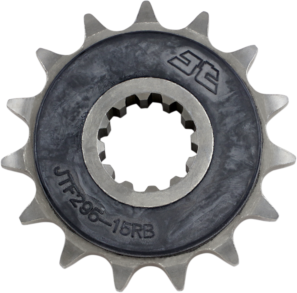 Computer-designed to achieve ultimate strength at minimum weight, JT combines leading-edge technology with top materials to produce the ultimate quality sprocket range with unbeatable value, Every sprocket meets or exceeds the highest possible quality standards set for the motorcycle industry, Sprockets are heat-treated and bead-blasted to reduce material surface tension, Front sprockets are made with C45 steel and SCM415 chromoly steel alloy; rear sprockets made with top-quality-grade C45 high-carbon steel, RUBBER CUSHIONED FRONT SPROCKETS "RB", Used by the major Japanese motorcycle manufacturers since early 1990’s to dampen the chain impact on the teeth of the front sprocket, Quality, design and OEM proven technology are the same as used for what is supplied to the motorcycle manufacturers, INDUCTION HARDENED BLACK ZINC FINISH REAR SPROCKETS "BK", Made from C45 high carbon steel, Teeth ARE heat-induction hardened to 38-50 HRC, When installing sprockets which differ from OEM sizes, check for proper clearances before operating., instruction to designerboxed note follows