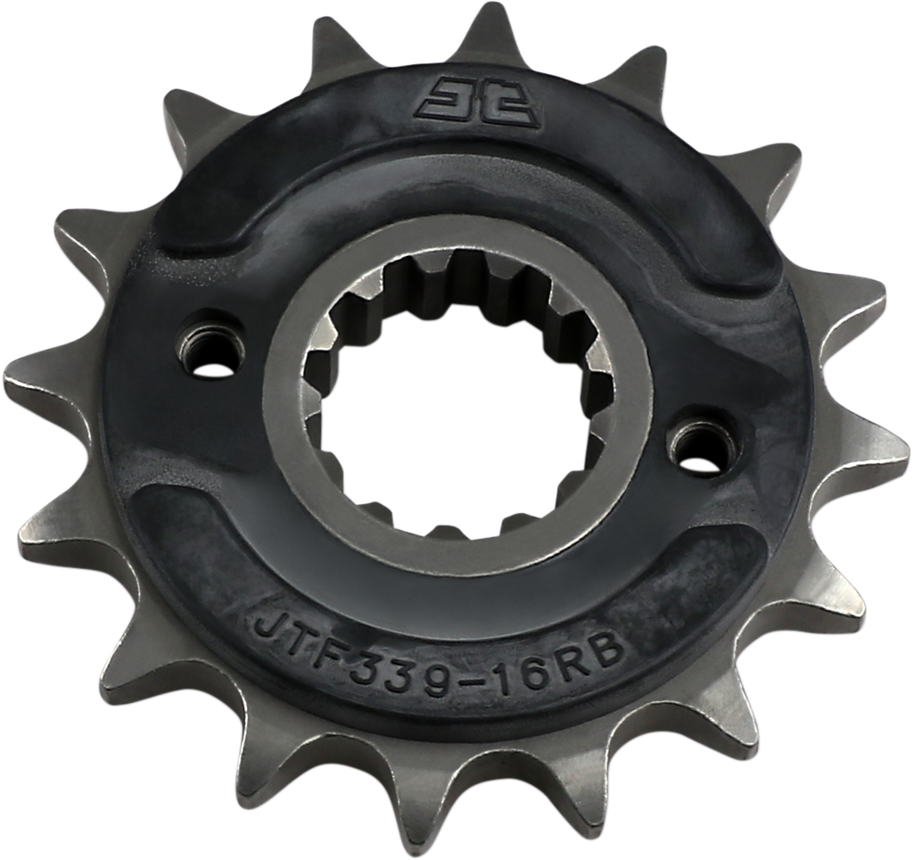 Computer-designed to achieve ultimate strength at minimum weight, JT combines leading-edge technology with top materials to produce the ultimate quality sprocket range with unbeatable value, Every sprocket meets or exceeds the highest possible quality standards set for the motorcycle industry, Sprockets are heat-treated and bead-blasted to reduce material surface tension, Front sprockets are made with C45 steel and SCM415 chromoly steel alloy; rear sprockets made with top-quality-grade C45 high-carbon steel, RUBBER CUSHIONED FRONT SPROCKETS "RB", Used by the major Japanese motorcycle manufacturers since early 1990’s to dampen the chain impact on the teeth of the front sprocket, Quality, design and OEM proven technology are the same as used for what is supplied to the motorcycle manufacturers, INDUCTION HARDENED BLACK ZINC FINISH REAR SPROCKETS "BK", Made from C45 high carbon steel, Teeth ARE heat-induction hardened to 38-50 HRC, When installing sprockets which differ from OEM sizes, check for proper clearances before operating., instruction to designerboxed note follows