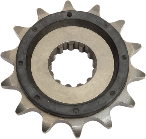 Computer-designed to achieve ultimate strength at minimum weight, JT combines leading-edge technology with top materials to produce the ultimate quality sprocket range with unbeatable value, Every sprocket meets or exceeds the highest possible quality standards set for the motorcycle industry, Sprockets are heat-treated and bead-blasted to reduce material surface tension, Front sprockets are made with C45 steel and SCM415 chromoly steel alloy; rear sprockets made with top-quality-grade C45 high-carbon steel, RUBBER CUSHIONED FRONT SPROCKETS "RB", Used by the major Japanese motorcycle manufacturers since early 1990’s to dampen the chain impact on the teeth of the front sprocket, Quality, design and OEM proven technology are the same as used for what is supplied to the motorcycle manufacturers, INDUCTION HARDENED BLACK ZINC FINISH REAR SPROCKETS "BK", Made from C45 high carbon steel, Teeth ARE heat-induction hardened to 38-50 HRC, When installing sprockets which differ from OEM sizes, check for proper clearances before operating., instruction to designerboxed note follows