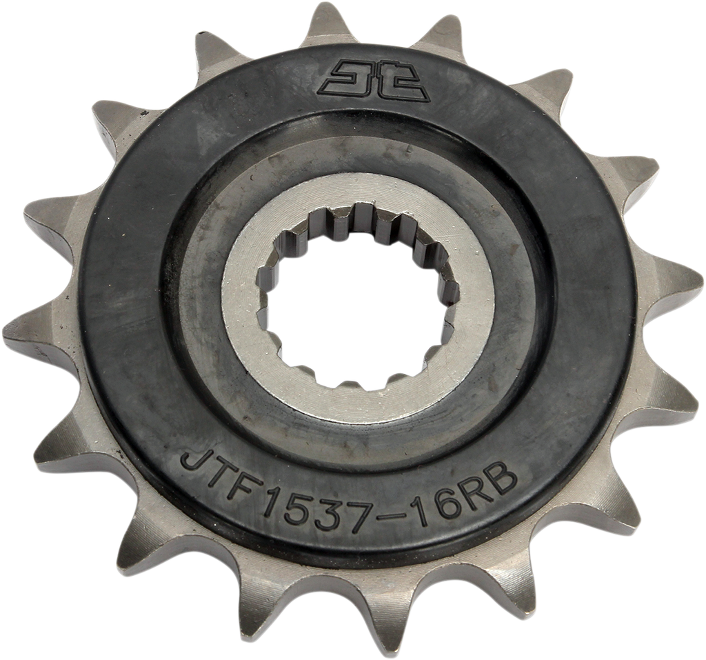 Computer-designed to achieve ultimate strength at minimum weight, JT combines leading-edge technology with top materials to produce the ultimate quality sprocket range with unbeatable value, Every sprocket meets or exceeds the highest possible quality standards set for the motorcycle industry, Sprockets are heat-treated and bead-blasted to reduce material surface tension, Front sprockets are made with C45 steel and SCM415 chromoly steel alloy; rear sprockets made with top-quality-grade C45 high-carbon steel, RUBBER CUSHIONED FRONT SPROCKETS "RB", Used by the major Japanese motorcycle manufacturers since early 1990’s to dampen the chain impact on the teeth of the front sprocket, Quality, design and OEM proven technology are the same as used for what is supplied to the motorcycle manufacturers, INDUCTION HARDENED BLACK ZINC FINISH REAR SPROCKETS "BK", Made from C45 high carbon steel, Teeth ARE heat-induction hardened to 38-50 HRC, When installing sprockets which differ from OEM sizes, check for proper clearances before operating., instruction to designerboxed note follows
