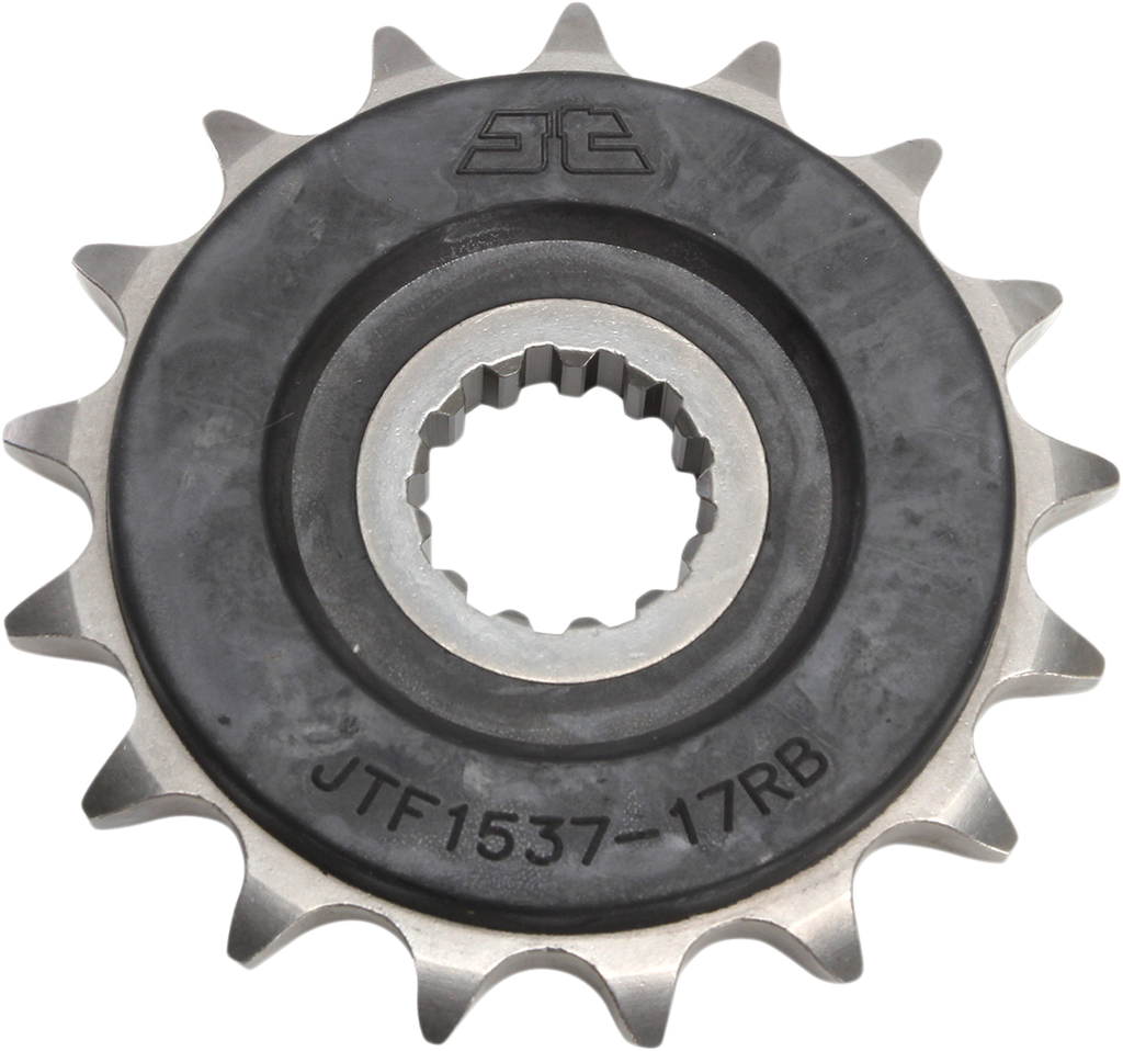 Computer-designed to achieve ultimate strength at minimum weight, JT combines leading-edge technology with top materials to produce the ultimate quality sprocket range with unbeatable value, Every sprocket meets or exceeds the highest possible quality standards set for the motorcycle industry, Sprockets are heat-treated and bead-blasted to reduce material surface tension, Front sprockets are made with C45 steel and SCM415 chromoly steel alloy; rear sprockets made with top-quality-grade C45 high-carbon steel, RUBBER CUSHIONED FRONT SPROCKETS "RB", Used by the major Japanese motorcycle manufacturers since early 1990’s to dampen the chain impact on the teeth of the front sprocket, Quality, design and OEM proven technology are the same as used for what is supplied to the motorcycle manufacturers, INDUCTION HARDENED BLACK ZINC FINISH REAR SPROCKETS "BK", Made from C45 high carbon steel, Teeth ARE heat-induction hardened to 38-50 HRC, When installing sprockets which differ from OEM sizes, check for proper clearances before operating., instruction to designerboxed note follows