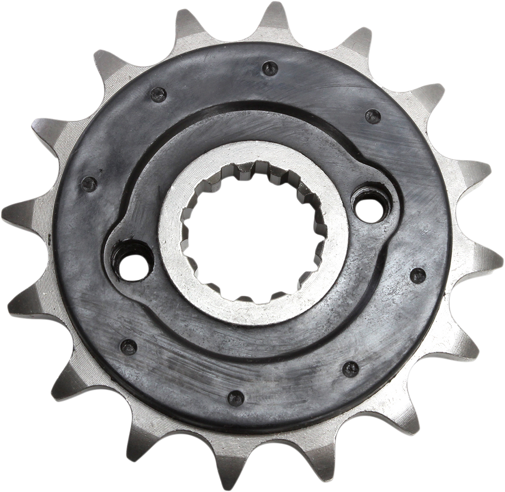Computer-designed to achieve ultimate strength at minimum weight, JT combines leading-edge technology with top materials to produce the ultimate quality sprocket range with unbeatable value, Every sprocket meets or exceeds the highest possible quality standards set for the motorcycle industry, Sprockets are heat-treated and bead-blasted to reduce material surface tension, Front sprockets are made with C45 steel and SCM415 chromoly steel alloy; rear sprockets made with top-quality-grade C45 high-carbon steel, RUBBER CUSHIONED FRONT SPROCKETS "RB", Used by the major Japanese motorcycle manufacturers since early 1990’s to dampen the chain impact on the teeth of the front sprocket, Quality, design and OEM proven technology are the same as used for what is supplied to the motorcycle manufacturers, INDUCTION HARDENED BLACK ZINC FINISH REAR SPROCKETS "BK", Made from C45 high carbon steel, Teeth ARE heat-induction hardened to 38-50 HRC, When installing sprockets which differ from OEM sizes, check for proper clearances before operating., instruction to designerboxed note follows