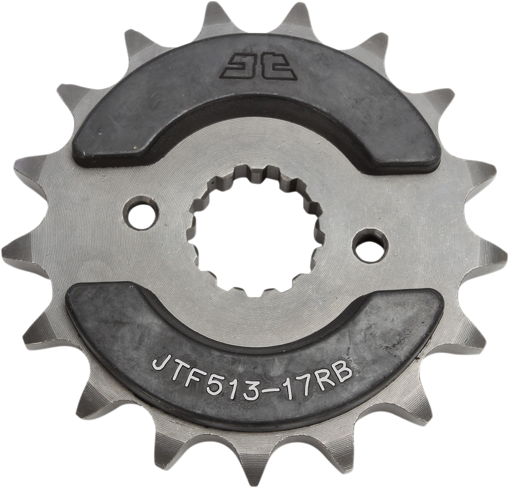 Computer-designed to achieve ultimate strength at minimum weight, JT combines leading-edge technology with top materials to produce the ultimate quality sprocket range with unbeatable value, Every sprocket meets or exceeds the highest possible quality standards set for the motorcycle industry, Sprockets are heat-treated and bead-blasted to reduce material surface tension, Front sprockets are made with C45 steel and SCM415 chromoly steel alloy; rear sprockets made with top-quality-grade C45 high-carbon steel, RUBBER CUSHIONED FRONT SPROCKETS "RB", Used by the major Japanese motorcycle manufacturers since early 1990’s to dampen the chain impact on the teeth of the front sprocket, Quality, design and OEM proven technology are the same as used for what is supplied to the motorcycle manufacturers, INDUCTION HARDENED BLACK ZINC FINISH REAR SPROCKETS "BK", Made from C45 high carbon steel, Teeth ARE heat-induction hardened to 38-50 HRC, When installing sprockets which differ from OEM sizes, check for proper clearances before operating., instruction to designerboxed note follows