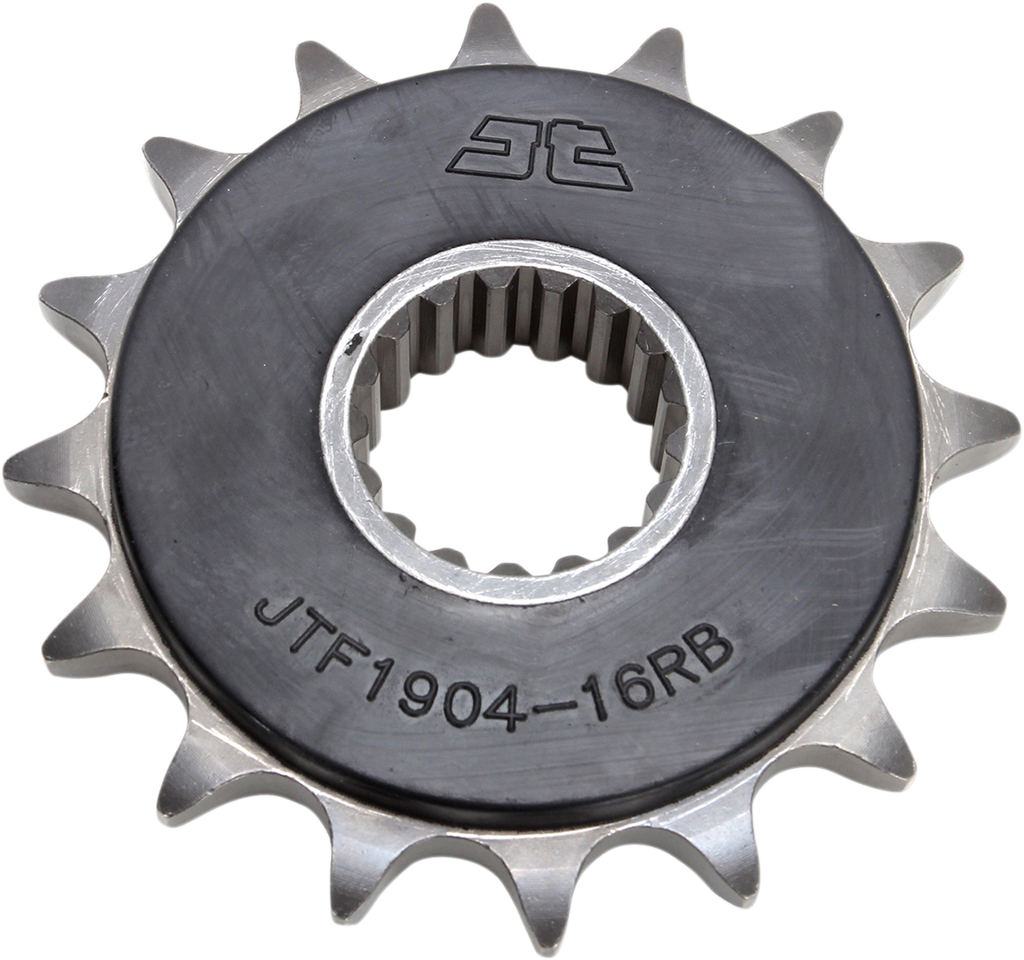 Computer-designed to achieve ultimate strength at minimum weight, JT combines leading-edge technology with top materials to produce the ultimate quality sprocket range with unbeatable value, Every sprocket meets or exceeds the highest possible quality standards set for the motorcycle industry, Sprockets are heat-treated and bead-blasted to reduce material surface tension, Front sprockets are made with C45 steel and SCM415 chromoly steel alloy; rear sprockets made with top-quality-grade C45 high-carbon steel, RUBBER CUSHIONED FRONT SPROCKETS "RB", Used by the major Japanese motorcycle manufacturers since early 1990’s to dampen the chain impact on the teeth of the front sprocket, Quality, design and OEM proven technology are the same as used for what is supplied to the motorcycle manufacturers, INDUCTION HARDENED BLACK ZINC FINISH REAR SPROCKETS "BK", Made from C45 high carbon steel, Teeth ARE heat-induction hardened to 38-50 HRC, When installing sprockets which differ from OEM sizes, check for proper clearances before operating., instruction to designerboxed note follows