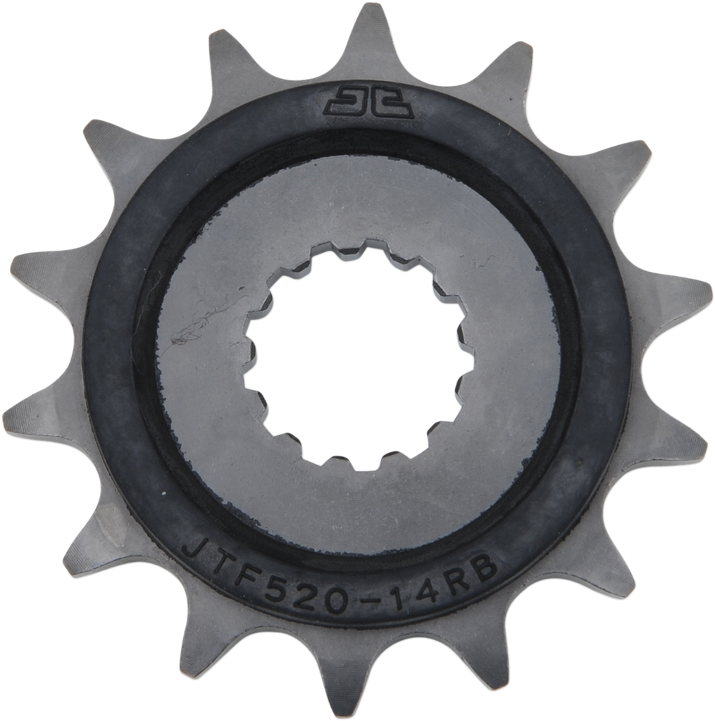Computer-designed to achieve ultimate strength at minimum weight, JT combines leading-edge technology with top materials to produce the ultimate quality sprocket range with unbeatable value, Every sprocket meets or exceeds the highest possible quality standards set for the motorcycle industry, Sprockets are heat-treated and bead-blasted to reduce material surface tension, Front sprockets are made with C45 steel and SCM415 chromoly steel alloy; rear sprockets made with top-quality-grade C45 high-carbon steel, RUBBER CUSHIONED FRONT SPROCKETS "RB", Used by the major Japanese motorcycle manufacturers since early 1990’s to dampen the chain impact on the teeth of the front sprocket, Quality, design and OEM proven technology are the same as used for what is supplied to the motorcycle manufacturers, INDUCTION HARDENED BLACK ZINC FINISH REAR SPROCKETS "BK", Made from C45 high carbon steel, Teeth ARE heat-induction hardened to 38-50 HRC, When installing sprockets which differ from OEM sizes, check for proper clearances before operating., instruction to designerboxed note follows