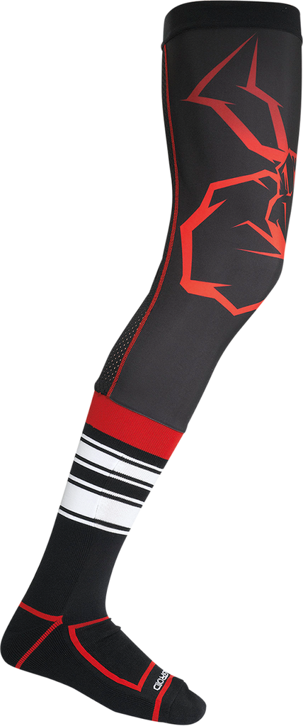 Lightweight, moisture-wicking polyester leg panels deliver maximum comfort, Mesh panel on back of leg for extra breathability, Quick-drying Coolmax® polyester is soft next to skin and aids moisture control to keep feet cool and dry, Nylon-reinforced sole extends durability in high-abrasion areas, Mid-thigh length, low profile cuff and stretch bands keeps sock in place under knee braces