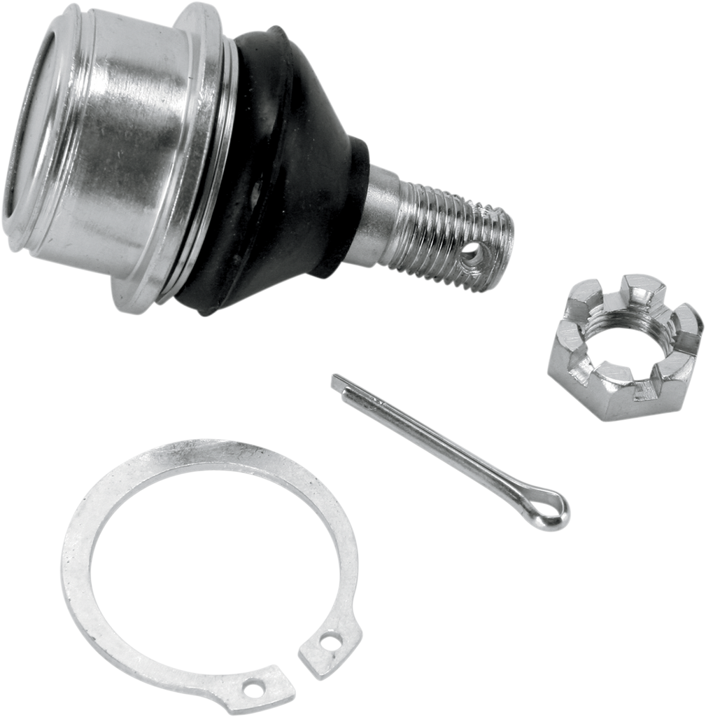 Ball joint kits are sold per A-arm and come with snap ring and cotter pin, King pin kits (used in applications where a king pin was used rather than a ball joint) include all bushings, pins and seals needed for repair, Ball joints feature heavy-duty steel cases with POM-M90 bearing material for long life, Put an end to premature Honda ball joint failure by upgrading from the OEM aluminum joint to our heavy-duty steel joint, Inexpensive replacement for those Kawasaki and Suzuki applications that otherwise require purchase of complete A-arm/steering knuckle