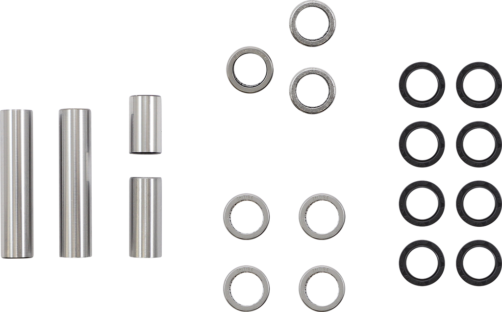 Includes the lower shock bearing and all other parts necessary to rebuild the suspension linkage, 52100 bearing steel and hard-plated spacers resist wear and rust, Each kit includes the lower shock bearing, all the shafts, seals and spacers in the link, link arm and lower shock mount