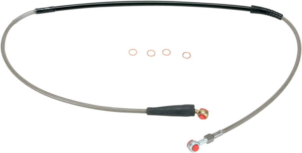 Swivel union ends are the secret to easier fitting, and ensure a kink- and stress-free installation, Venhill Engineering in the UK makes Moose Racing Stainless Steel Brake and Clutch lines to the highest specifications, Each line is made from top quality DuPont Teflon®-coated hose, wrapped with British-made stainless steel, and PVC-coated for protection and great looks, Rubber protection boots and extra-rigid tubing are used to protect vulnerable areas from heat and impact and to prevent hose flex under compression, Each line is designed to withstand a minimum of 14,000 psi, Installing Moose Racing stainless lines gives a large performance increase by significantly reducing expansion under pressure and absorption of water when compared to stock rubber hoses