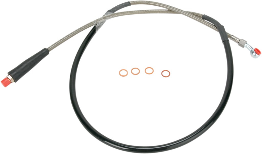 Swivel union ends are the secret to easier fitting, and ensure a kink- and stress-free installation, Venhill Engineering in the UK makes Moose Racing Stainless Steel Brake and Clutch lines to the highest specifications, Each line is made from top quality DuPont Teflon®-coated hose, wrapped with British-made stainless steel, and PVC-coated for protection and great looks, Rubber protection boots and extra-rigid tubing are used to protect vulnerable areas from heat and impact and to prevent hose flex under compression, Each line is designed to withstand a minimum of 14,000 psi, Installing Moose Racing stainless lines gives a large performance increase by significantly reducing expansion under pressure and absorption of water when compared to stock rubber hoses