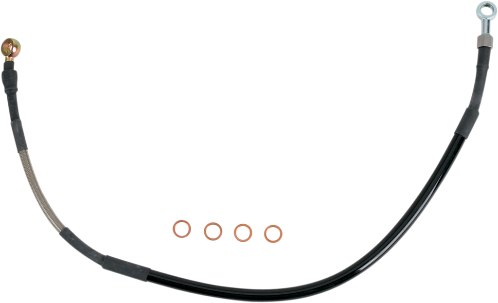 Swivel union ends are the secret to easier fitting, and ensure a kink- and stress-free installation, Venhill Engineering in the UK makes Moose Racing Stainless Steel Brake and Clutch lines to the highest specifications, Each line is made from top quality DuPont Teflon®-coated hose, wrapped with British-made stainless steel, and PVC-coated for protection and great looks, Rubber protection boots and extra-rigid tubing are used to protect vulnerable areas from heat and impact and to prevent hose flex under compression, Each line is designed to withstand a minimum of 14,000 psi, Installing Moose Racing stainless lines gives a large performance increase by significantly reducing expansion under pressure and absorption of water when compared to stock rubber hoses