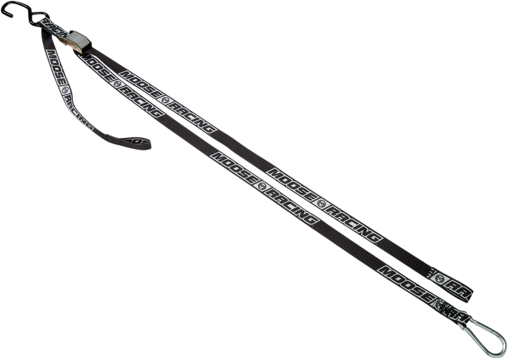 Make securing your machine an easier job, Each tie-down features one high-strength carabiner, 1” wide straps are printed with the Moose Racing logo, Built-in soft tie helps prevent damage to your machine, 7’ long (1’ longer than industry standard), 1,350-lb. break strength, Made in the U.S.A.