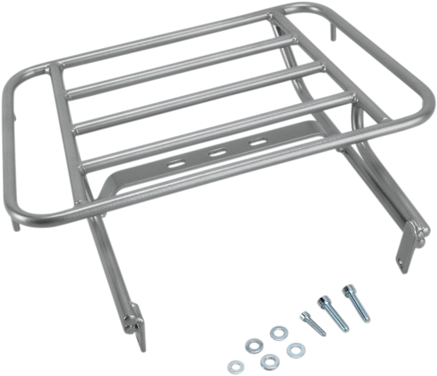 Steel construction with a powder-coated finish, Easy bolt-on installation, Medium-sized rack designed to blend in to the design of the motorcycle, Seat can be removed without rack removal, Most soft tail bags mount easily and securely, All mounting hardware included, Made in the U.S.A.