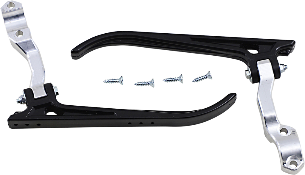 Designed for open-ended moto roost deflectors, Mounts on clutch perch and brake levers, replacing mounting caps, Saves valuable space on handlebars for controls like kill switches, e-start buttons, hole shot buttons, map switches, light switches and more, Composite deflector arm has a pocket milled into it, allowing the composite arm to have a controlled flex, Composite arm paired with aluminum mount makes this the strongest open ended deflector on the market, For use with Countour 2 Roost Deflectors