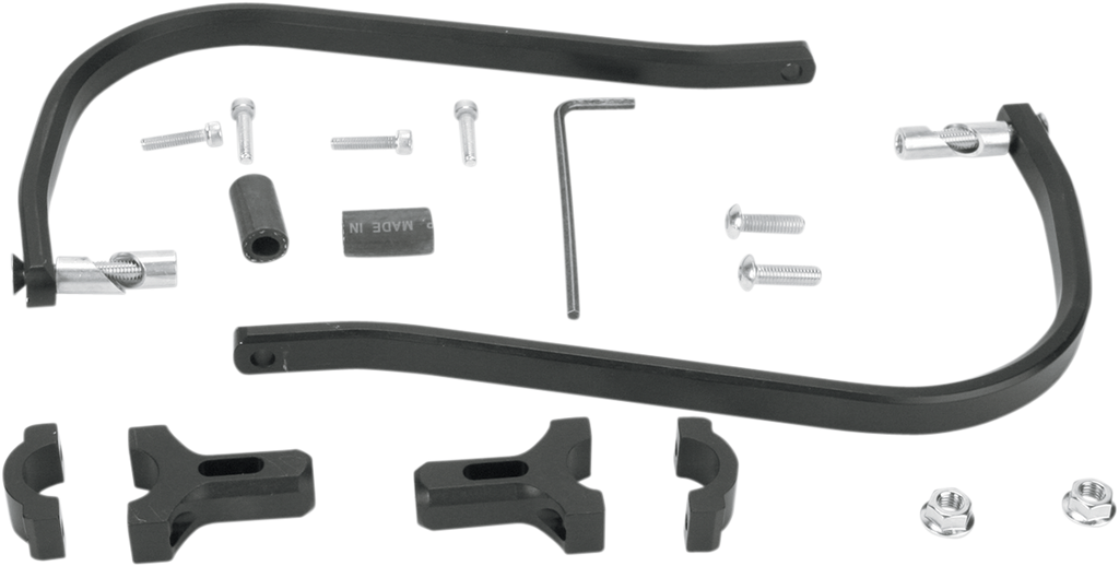 6061 T-6 aluminum handguards for mini (80cc-125cc), standard and oversized handlebars, Wide radius bend for plenty of hand and lever space, Curved to fit Moose Racing Competition handguard protectors, All mounting hardware included, Mini fits 65cc-85cc 2-stroke bikes and 70cc-125cc 4-stroke bikes, Made in the U.S.A.
