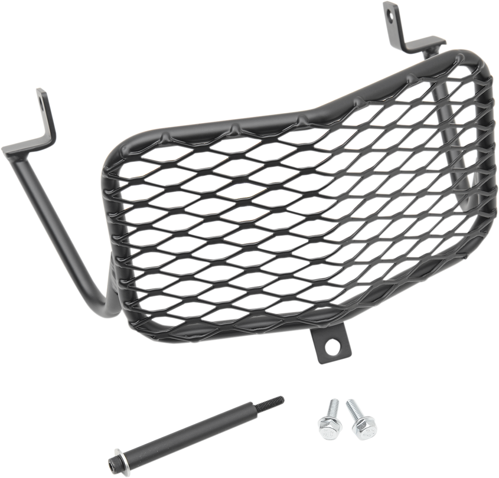 Fabricated from mild steel and expanded metal, This guard will protect the headlight from flying debris, Powder-coated flat black, Light weight with limited reduction in light output, Easy installation with all required hardware provided, Made in the U.S.A.