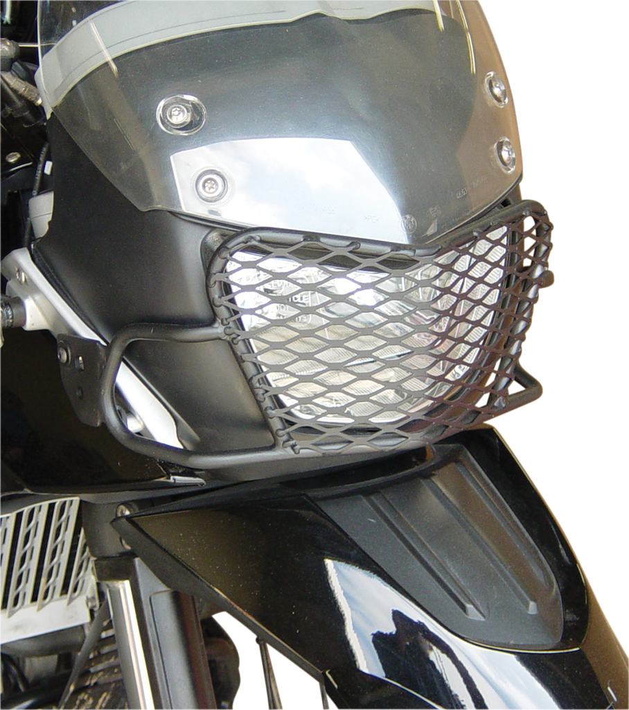Fabricated from mild steel and expanded metal, This guard will protect the headlight from flying debris, Powder-coated flat black, Light weight with limited reduction in light output, Easy installation with all required hardware provided, Made in the U.S.A.