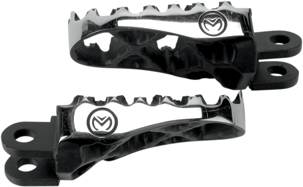 Each footpeg is cast, heat treated, and hardened from 17-4 stainless steel, given a solution annealing treatment, and age hardened for superior strength, Width (57 mm) and length (90 mm); slightly convex platform for better boot positioning and grip when leaning forward or back, Dual plane teeth provides traction without the "stuck" feeling, Made in the U.S.A.