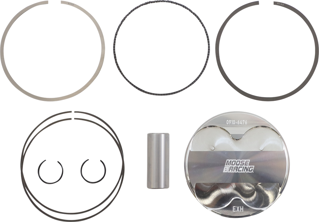 Moose Racing pistons feature X-style forgings and fully boxed-style (race pistons) forgings for ultimate strength, minimizing friction, durability, power, and weight reduction, Pro Race Piston increases the durability by reducing the stresses in the pin bore area, Pro Race Piston allows the pin to flex while removing stress from the area, Full radius dome designs maximize quench while eliminating hot spots that promote detonation, Internal bracing maximizes durability while decreasing friction in the pin assembly, Fully-boxed style (race pistons) forgings come standard with skirt coating which reduces friction, which in turn reduces heat (these are called out in the application chart), Race piston kit includes a DLC pin; this technology has been proven and used because of its high resistance to abrasive wear, which extends the service life and reliability under extreme conditions, Each Moose Racing piston kit includes a high performance piston, wrist pin, rings, circlips and a top end gasket kit, Made in the U.S.A., Be sure to use race fuel with some applications.
