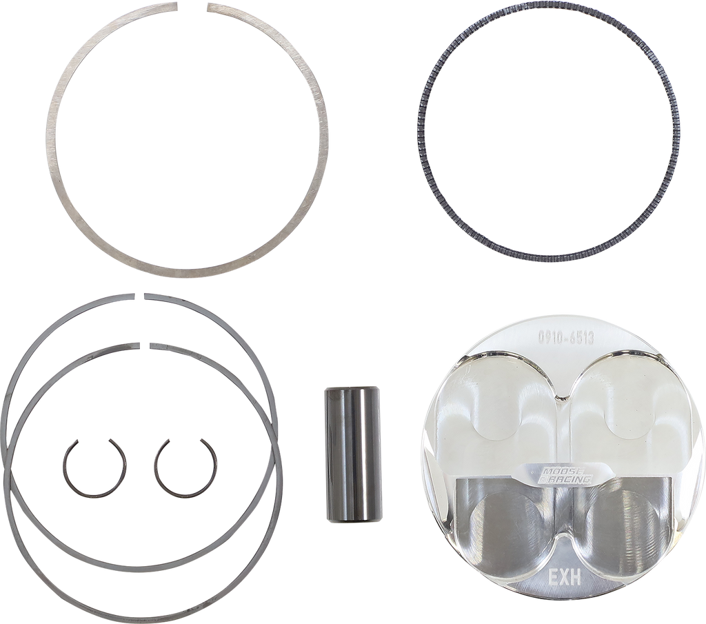 Moose Racing pistons feature X-style forgings and fully boxed-style (race pistons) forgings for ultimate strength, minimizing friction, durability, power, and weight reduction, Pro Race Piston increases the durability by reducing the stresses in the pin bore area, Pro Race Piston allows the pin to flex while removing stress from the area, Full radius dome designs maximize quench while eliminating hot spots that promote detonation, Internal bracing maximizes durability while decreasing friction in the pin assembly, Fully-boxed style (race pistons) forgings come standard with skirt coating which reduces friction, which in turn reduces heat (these are called out in the application chart), Race piston kit includes a DLC pin; this technology has been proven and used because of its high resistance to abrasive wear, which extends the service life and reliability under extreme conditions, Each Moose Racing piston kit includes a high performance piston, wrist pin, rings, circlips and a top end gasket kit, Made in the U.S.A., Be sure to use race fuel with some applications.