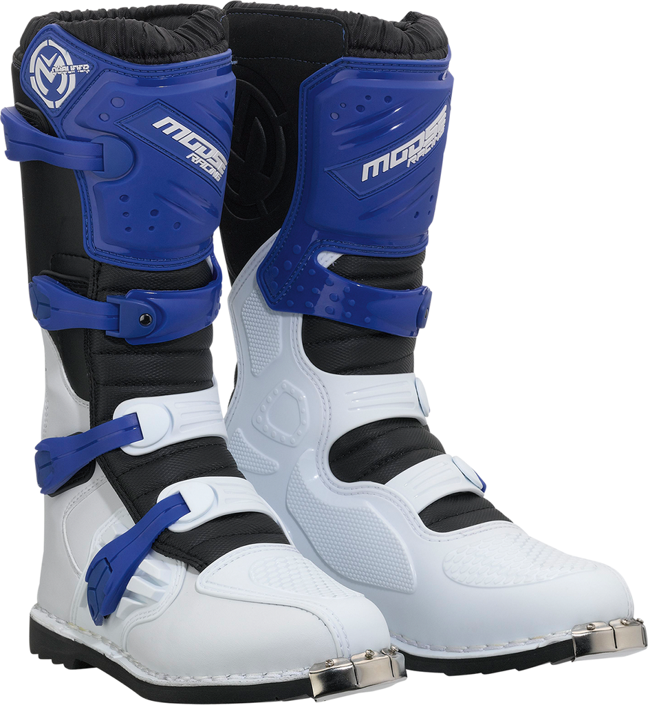 Chassis is constructed with synthetic leather that is flexible and abrasion resistant, Reinforced TPU shin, ankle, and foot plates improve stability without sacrificing mobility, Rigid steel shank reinforced sole eliminates flex and provides superior foot support, Plastic closure strap with metal buckle is adjustable and secure, Polyester inner lining wicks moisture, Synthetic rubber outsole is long lasting and provides superior grip, Metal toe cap to reinforce and protect the outsole