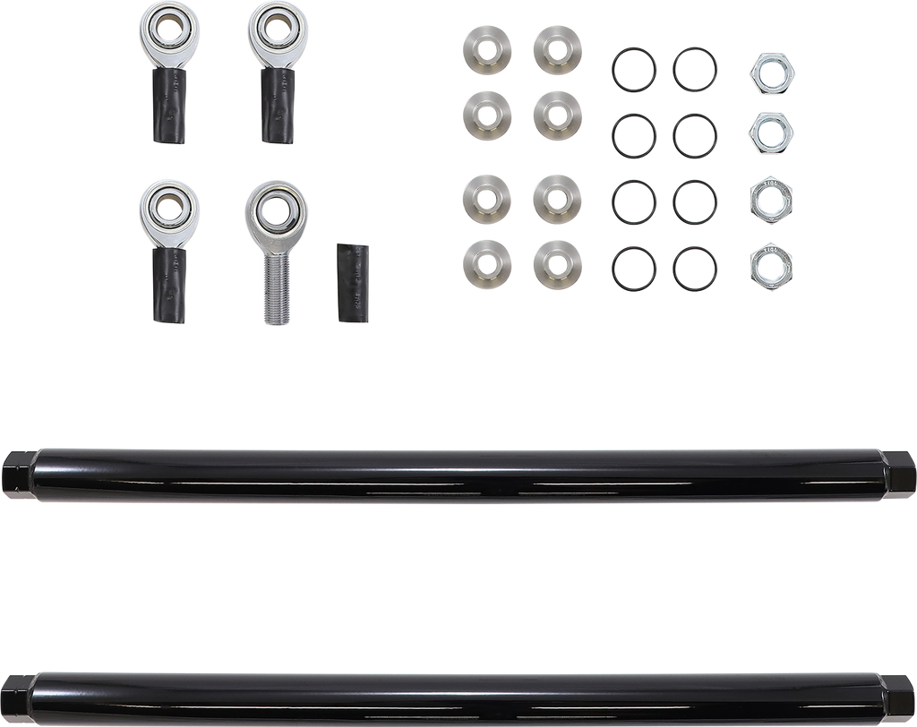 TIG welded, Durable powder coat finish, Fully adjustable to set camber and toe, Heat treated 5/8" heim joints rated to 17,900 lbs, 1-1/4" .125" wall dom tubing, 416 stainless steel misalignment spacers, HD versions are constructed from massive 1-1/2" seamless dom tubing you will never have to worry about bending or breaking another radium arm again