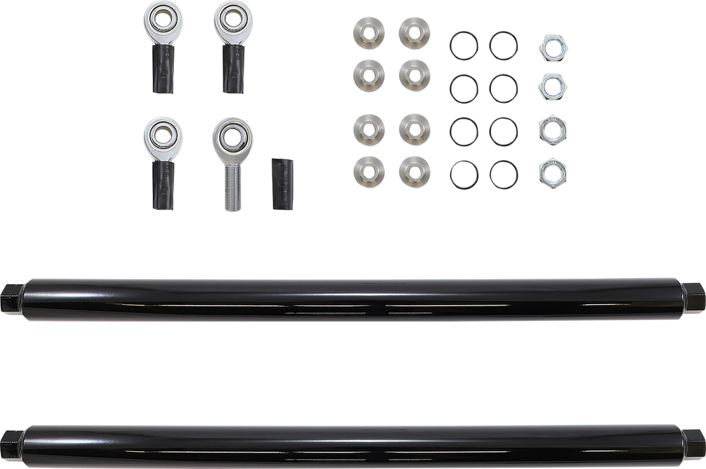 TIG welded, Durable powder coat finish, Fully adjustable to set camber and toe, Heat treated 5/8" heim joints rated to 17,900 lbs, 1-1/4" .125" wall dom tubing, 416 stainless steel misalignment spacers, HD versions are constructed from massive 1-1/2" seamless dom tubing you will never have to worry about bending or breaking another radium arm again