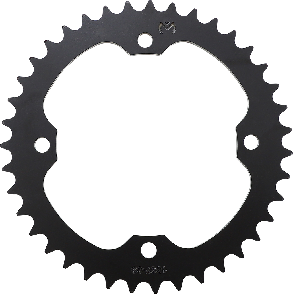 Rear Steel Sprocket - 39 Tooth Manufactured from premium-quality C45 high-carbon steel, CNC precision-machined to assure tight tolerances, Machined with lightening holes, Attractive bright zinc-plated finish