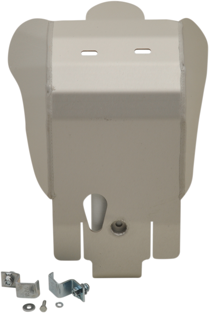 Protect vital engine parts and cases from rocks and debris, Clear anodized for corrosion protection and good looks, Skid plates made from 3/16" 5052 H-32 aluminum, Smooth underside won't snag when crossing logs, Oil drain hole on all required models, Heat-treated chromoly steel clamps keep plates mounted securely, All mounting hardware included, Made in the U.S.A.