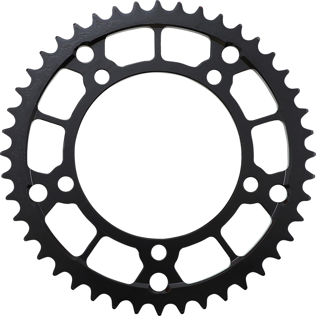 Steel Rear Sprocket - Triumph - 44 Tooth Manufactured from premium-quality C45 high-carbon steel, CNC precision-machined to assure tight tolerances, Machined with lightening holes, Attractive bright zinc-plated finish