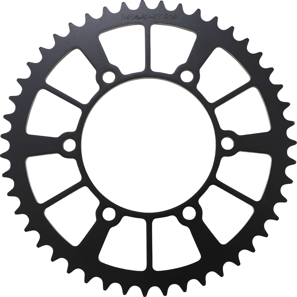 Steel Rear Sprocket - Triumph - 47 Tooth Manufactured from premium-quality C45 high-carbon steel, CNC precision-machined to assure tight tolerances, Machined with lightening holes, Attractive bright zinc-plated finish