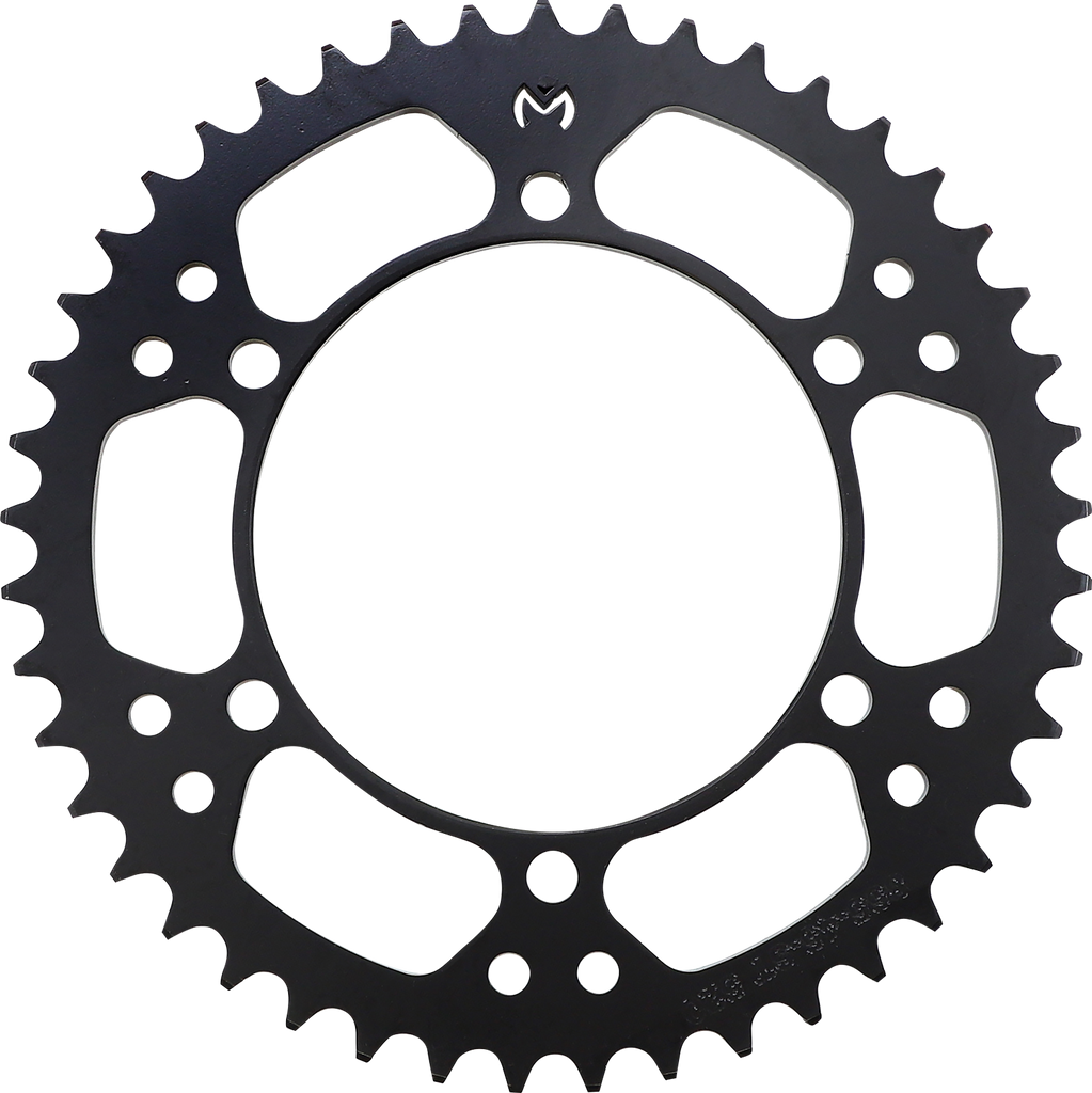 Steel Rear Sprocket - Yamaha- 45 Tooth Manufactured from premium-quality C45 high-carbon steel, CNC precision-machined to assure tight tolerances, Machined with lightening holes, Attractive bright zinc-plated finish