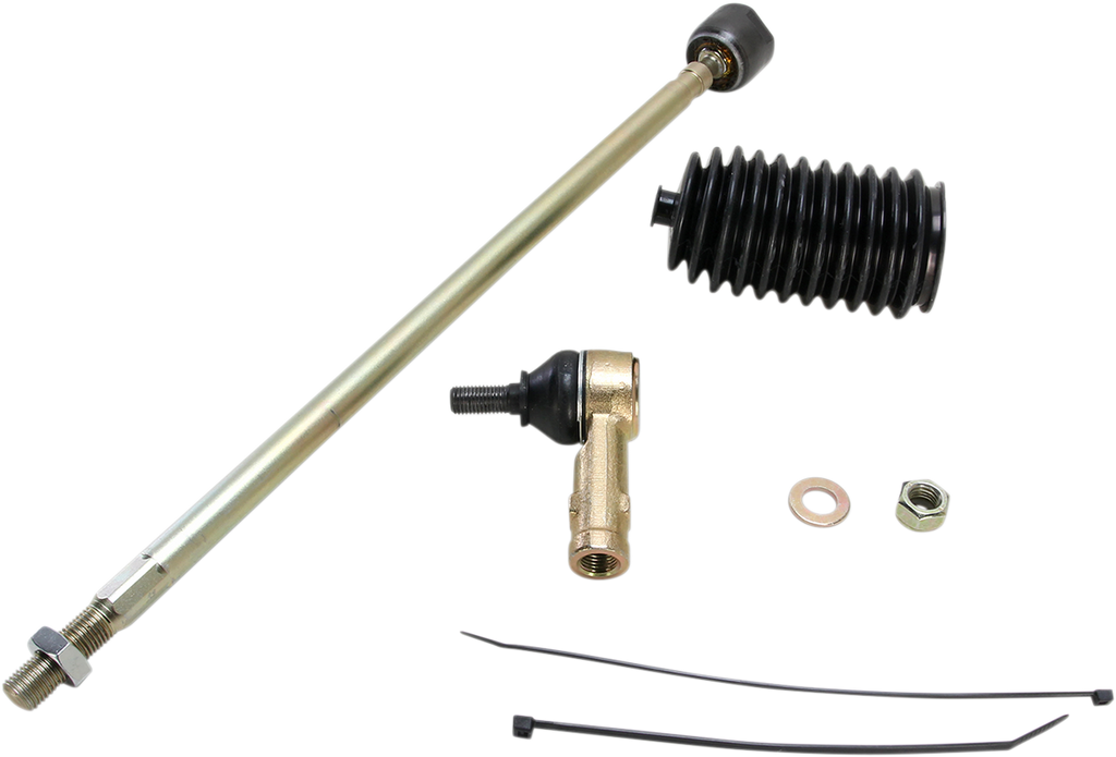 Inner rod assemblies have increased shaft diameter to improve strength, Tie-rod end kit left, inner and outer – contains both tie-rod end and shaft that connects to the steering rack as well as the outer tie-rod end; kit also contains a boot and required hardware for the left (driver) side, Tie-Rod End Kit Right, Inner and outer – contains both tie-rod end and shaft that connects to the steering rack as well as the outer tie-rod end; kit also contains a boot and required hardware for the right (passenger) side, Kit includes heavy-duty inner and outer rod ends with replacement boot, clamps and any required lock washers