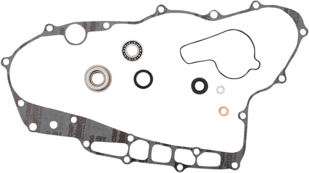 Include every gasket, O-ring, bearing and seal required to rebuild a water pump, Typical kit includes the following: bearings where applicable; rubber seals; mechanical water pump seal where applicable; side cover gasket; water pump gasket; snap rings located on water pump shaft and copper drain washers