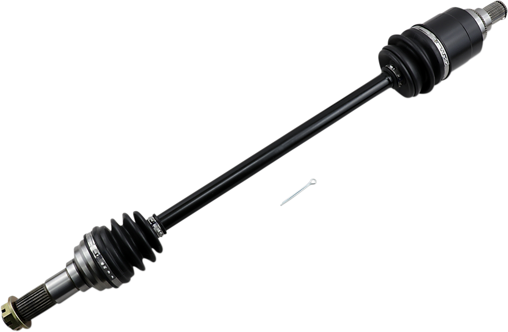 Precision machined and heat treated solid chromoly steel center shaft, cages, races and ball bearings up to 35% stronger, Highest quality, most reliable, and toughest constant velocity axles on the market, Manufactured in a state-of-the-art ISO9001 and TS16949 certified factory, Induction heat treated joints packed with high performance moly grease, Designed to withstand the most rigorous conditions and terrain, High-strength spring steel retaining clips (where required), Torture tested to failure to ensure maximum durability, Exceed OEM quality in fit, form and function, Secure stainless steel dust boot clamps, Fully assembled for easy installation, Precision rolled splines and threads