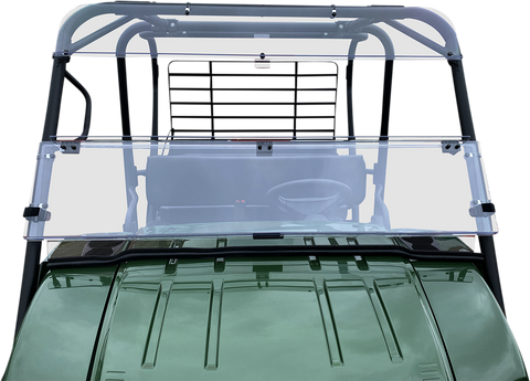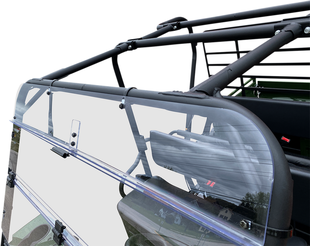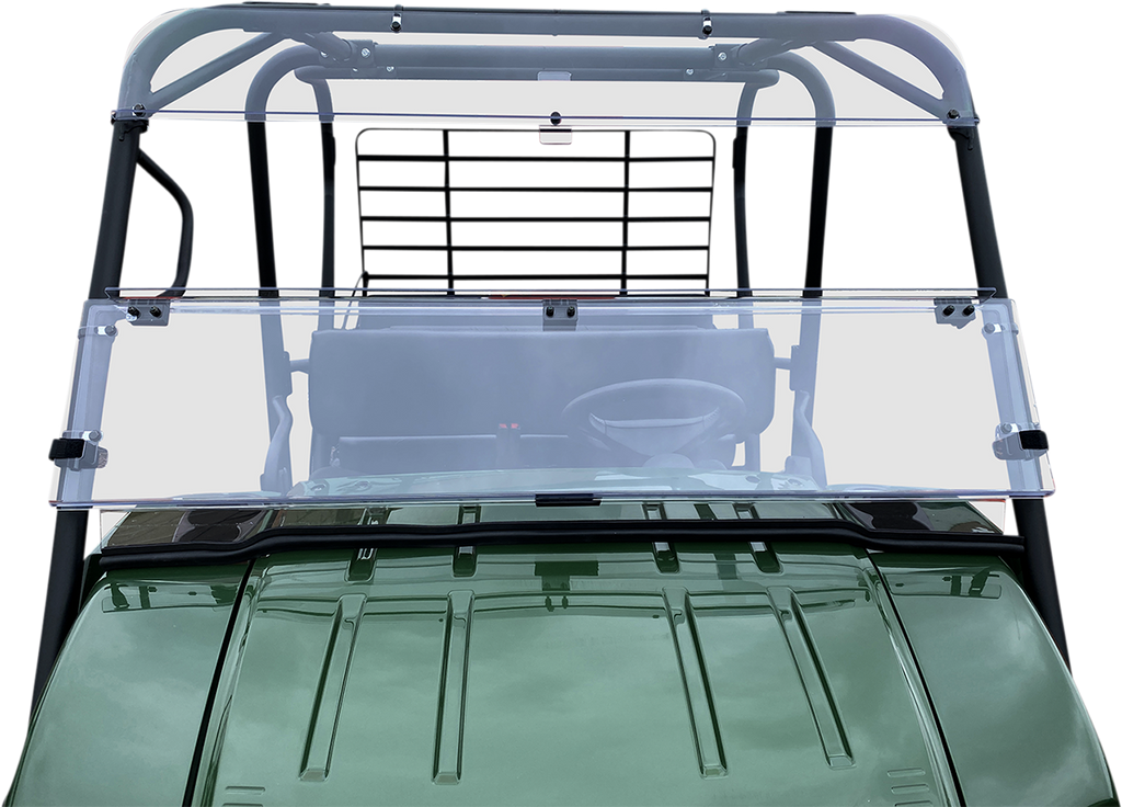 Made from premium .177" thick polycarbonate shield, Centrally hinged for ventilation, Tool-less operation, Mounts to the roll bar using stainless steel rubber coated mount straps, Windshields feature a rubber seal to help keep the elements out; replacement kit with 6' rubber seal available separately, Made in the U.S.A.