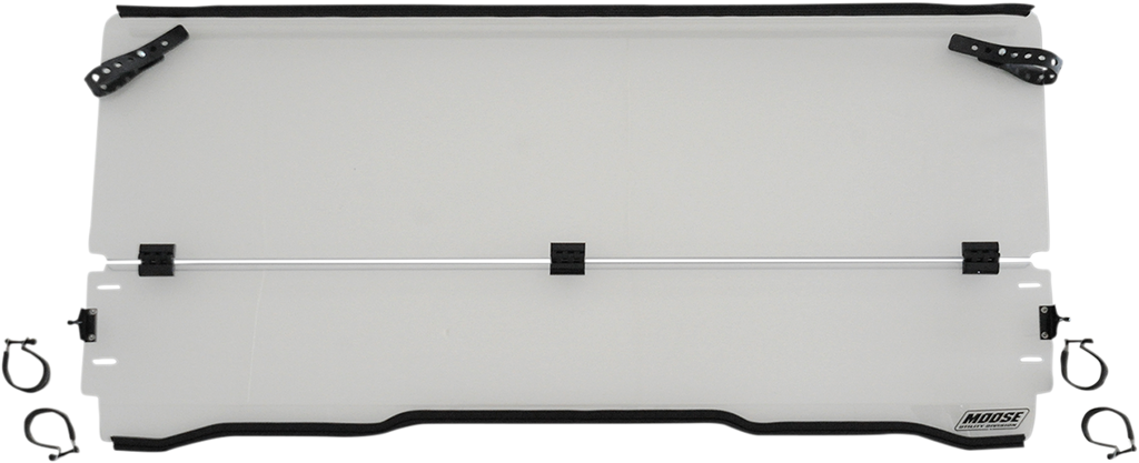 Made from premium .177" thick polycarbonate shield, Centrally hinged for ventilation, Tool-less operation, Mounts to the roll bar using stainless steel rubber coated mount straps, Windshields feature a rubber seal to help keep the elements out; replacement kit with 6' rubber seal available separately, Made in the U.S.A.