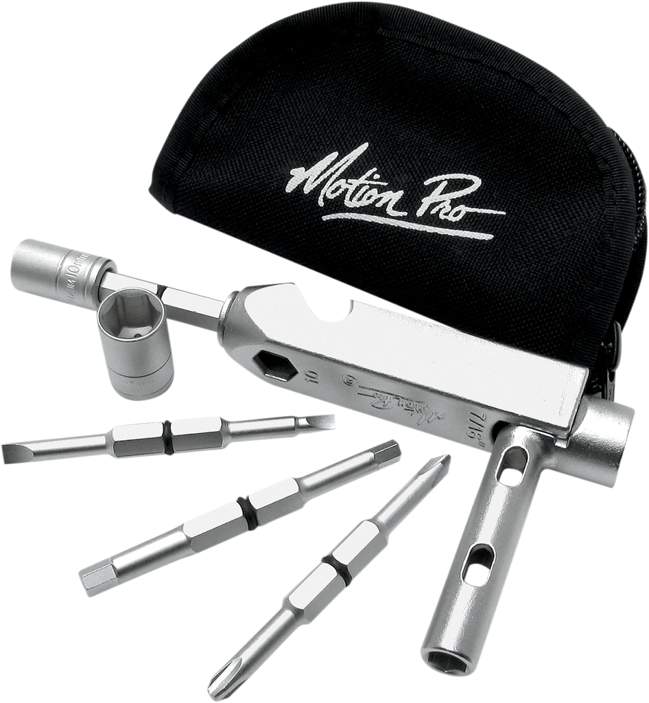 A must-have for on-the-trail repairs or adjustments, Can be used to remove 8, 10, 12 & 14 mm bolts, #2 & #3 Phillips screws, small & medium straight-slot screws and 5 & 6 mm Hex bolts, Includes a 1/4" and 3/8" socket driver, 10 mm & 12 mm 1/4". drive sockets, and a convenient carrying case