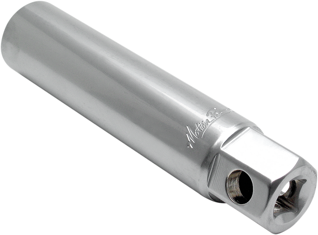 Socket can be driven with various tools including the Motion Pro® spark plug ratchet wrench, 3/8" ratchet, 13/16" wrench, tool kit bar, or a Phillips screwdriver placed through the 8.5 mm hole at the top of the socket, Originally designed for the Honda XR400R as a trail tool but fits many models with 18 mm plugs, Thin wall design to fit into low clearance plug cavity