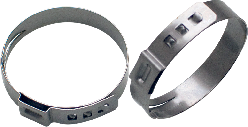 Please follow factory service manual recommendations for selecting correct clamp size for each engine, Durable partitioned plastic box with snap lid keeps your stock of clamps organized and ready to use, Specially formed edges reduce risk of damage to hose and hose barb, Narrow 9 mm band provides concentrated seal compression, Stepless clamps provide secure 360° clamping with no gaps, Clamps require use of Motion Pro Pincer Tool, Tampering is visible